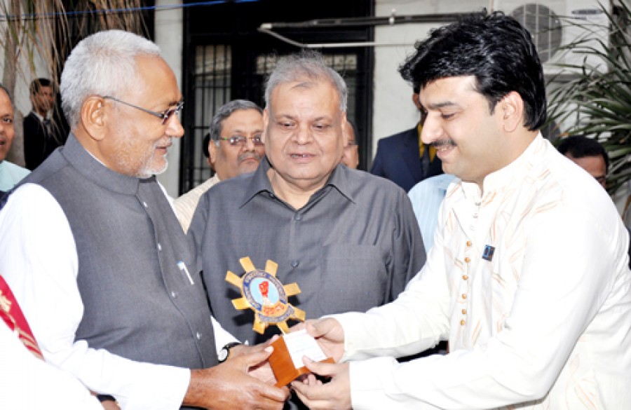 पटना। बिहार प्रांतीय मारवाड़ी युवा मंच के एक प्रतिनिधिमंडल ने मंच के प्रदेश अध्यक्ष अनिल वर्मा के नेतृत्व में मुख्यमंत्री नीतीश कुमार से मुलाकात की। प्रतिनिधिमंडल ने नीतीश कुमार को मारवाड़ी युवा मंच के बिहार में प्रदेश स्तर पर चलाये जा रहे विकलांगता विहीन बिहार अभियान एवं रक्त-दान अभियान 'मेरा लहू देश के काम, माँ तुझे सलाम' की विस्तृत जानकारी दी। मुख्यमंत्री नीतीश कुमार ने युवा मंच के रक्त-दान अभियान के पोस्टर का अनावरण किया। शिष्टमंडल ने मुख्यमंत्री को युवा मंच की तरफ से एक प्रतीक चिन्ह भेंट किया। प्रतिनिधिमंडल में युवा मंच के प्रदेश पदाधिकारी कंहाई डोकानिया, प्रकाश महेशका, संजीव वर्मा, विकेश अग्रवाल, राधे राठी एवं अनीता अग्रवाल शामिल थे।