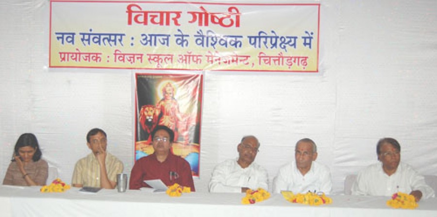 चित्तौड़गढ़। 'समय सभी के साथ एक सा रहता है, हम ही अनुकूल-प्रतिकूल बन पड़ते हैं, बीते बीस सालों में हमारा भारत देश ही समय के प्रतिकूल स्थिति में रहा है, विचार गोष्ठी के बहाने हमें देश को अनुकूल बनाने की बात करनी है, वैश्वीकरण ने हमारा सोच,विचार और विरासत सबकुछ बदल कर रख दिया है, कई देशों का आत्मविश्वास तक तोड़ दिया है, इन सालों में हमारे दिमाग पर सोचा समझा हमला किया गया है, हमारे देश के वैविध्य को कौन नहीं जानता है? कई तरह के आक्रमणों के बावजूद जिंदा हमारी संस्कृति ही हमारे लिए अकूत खजाना है।' ये विचार विजन कॉलेज ऑफ मैनेजमेंट के सहयोग से यहां जैन धर्मशाला में नव संवत्सर, आज के वैश्विक परिप्रेक्ष्य में, विषयक संगोष्ठी में विभिन्न वक्ताओं ने व्यक्त किए।