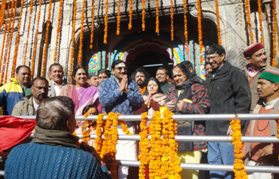 केदारनाथ। मुख्यमंत्री रमेश पोखरियाल निशंक रविवार को केदारनाथ धाम पहुंचे और पूजा अर्चना की। चारधाम के अंतर्गत रविवार को पूरे मंत्रोच्चार के साथ केदारनाथ धाम के कपाट श्रद्धालुओं के लिए खोले गये। मुख्यमंत्री ने सपरिवार भगवान केदारनाथ के दर्शन किये और प्रदेश की खुशहाली की कामना की। मुख्यमंत्री ने स्थानीय जनता से भी बात की और उनकी समस्याओं को सुना। उन्होंने कहा कि गौरीकुंड से रामबाड़ा तक शीघ्र सड़क निर्माण की कोशिश हो रही है। रामबाड़ा से केदारनाथ तक बनने वाले रोपवे पर भी शीघ्र ही कार्य शुरू हो जाएगा। उन्होंने कहा कि उनकी सरकार चारधाम यात्रा को और अधिक सुगम और सफल बनाने के लिए प्रतिबद्ध है। इस अवसर पर आपदा प्रबंधन मंत्री खजान दास, विधायक एवं सभा सचिव आशा नौटियाल, जिला पंचायत अध्यक्ष चंडी प्रसाद भट्ट, प्रमुख सचिव पर्यटन राकेश शर्मा सहित जनप्रतिनिधि उपस्थित थे।