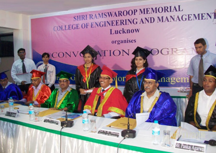 लखनऊ। श्रीराम स्वरूप मेमोरियल कालेज ऑफ इंजीनियरिंग एण्ड मैनेजमेंट, लखनऊ में पोस्ट ग्रेजुएट डिप्लोमा इन मैनेजमेंट (पीजीडीएम) के प्रथम दीक्षांत समारोह में निष्ठा सिंह को स्वर्ण, करिश्मा सेठ को रजत और दिव्यांशू सिंह को कांस्य पदक प्रदान किया गया। समारोह का शुभारम्भ आईआईएम के डायरेक्टर और मुख्य अतिथि प्रो देवी सिंह एवं आईआईटी कानपुर के इंडस्ट्रीयल एण्ड मैनेजमेंट इंजीनियरिंग के विभागाध्यक्ष और विशेष अतिथि प्रो एनके शर्मा ने किया। प्रो देवी सिंह ने यहां के शैक्षिणिक वातावरण की प्रशंसा करते हुए पीजीडीएम प्रोग्राम के सफल अभ्यर्थियों को बधाई दी और कहा कि शिक्षा वही है जिसका आज उपयोग कर सकें। उन्होंने निजी जीवन एवं सामाजिक जीवन के बीच तालमेल करने की बात कही। अभ्यर्थियों को यह सीख भी दी कि कठिन व्यवसायिक वातावरण में अपने आप को स्थापित करने के साथ-साथ अपनी पहचान भी बनानी है इसलिए अनिवार्य है कि छात्र अपने जीवन का उद्देश्य तय करें और उसे पूरा करने के लिए प्रतिज्ञाबद्ध रहें।