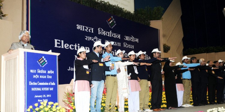 नई दिल्ली। द्वितीय राष्ट्रीय मतदाता दिवस का राष्ट्रीय समारोह बुधवार को नई दिल्ली के विज्ञान भवन में मनाया गया। यह परंपरा भारत के निर्वाचन आयोग के स्थापना दिवस को मनाने और लोकतांत्रिक प्रक्रिया में मतदाताओं, विशेष रूप से युवा वर्ग की भागीदारी बढ़ाने के लिए पिछले साल शुरू की गई थी। सभी मतदाताओं ने राष्ट्रीय मतदाता दिवस की शपथ ली। पूर्व राष्ट्रपति डॉ एपीजे अब्दुल कलाम मुख्य अतिथि थे, उन्होंने समाज के विभिन्न वर्गों से संबंधित, दिल्ली के 20 मतदाताओं को मतदाता फोटो पहचान पत्र दिए। उसके साथ मतदाता होने पर गर्व-मतदान के लिए तैयार संबंधी एक बैज भी दिया। समारोह में मुख्य चुनाव आयुक्त डॉ एसवाई कुरैशी, चुनाव आयुक्त वीएस संपथ तथा एचएस ब्रह्मा, प्रतिष्ठित विदेशी गणमान्य व्यक्ति एवं राजनीतिक पार्टी के प्रतिनिधि भी शामिल थे। डॉ कलाम ने चार जिला निर्वाचक अधिकारियों, पुलिस अधीक्षकों को सर्वश्रेष्ठ चुनावी कार्यप्रणाली अपनाने के लिए राष्ट्रीय पुरस्कार भी दिए। यह पुरस्कार मयूर माहेश्वरी डीईओ, रमाबाईनगर (उत्तर प्रदेश) प्रभव कुमार एसपी बांकुड़ा (पश्चिम बंगाल) अमित सिंगला, डीईओ, उत्तर पश्चिम दिल्ली तथा एस संगीता, आरडीओ, त्रिची पश्चिम आरओ (तमिलनाडू) को दिए गए।