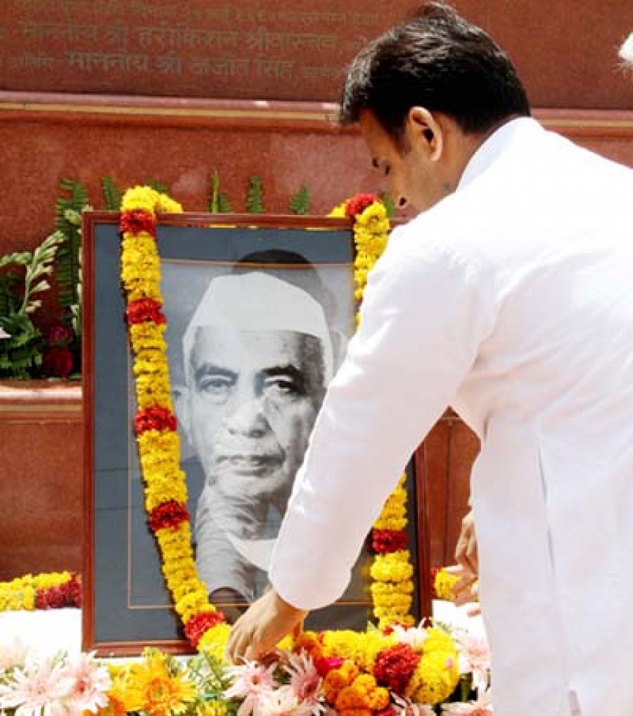 लखनऊ। मुख्यमंत्री अखिलेश यादव ने पूर्व प्रधानमंत्री चौधरी चरण सिंह की पुण्यतिथि पर विधान भवन के समक्ष उनकी प्रतिमा पर पुष्प अर्पित कर अपनी विनम्र श्रद्धांजलि अर्पित की और संकल्प लिया कि वे चौधरी साहब के विचारों का अक्षरशः अनुसरण करेंगे, समाजवादी पार्टी की सरकार उनके सपनों को पूरा करने का काम करेगी। मंत्रिमंडल के सहयोगी, रालोद, कांग्रेस के विधायक और अन्य नेता भी इस अवसर पर मौजूद थे। मुलायम सिंह यादव ने कहा कि समाजवादी पार्टी की सरकार चौधरी साहब के रास्ते पर चल रही है, वह नेताजी (मुलायम सिंह यादव) के भी नेता रहे हैं। उन्होंने किसान की राष्ट्रीय स्तर पर पहचान कराई थी, राज्य सरकार की प्राथमिकता में भी किसान हैं। उन्होंने कहा कि चौधरी साहब ईमानदार राजनेता थे, वह जनसेवा के प्रति निष्ठा को आवश्यक समझते थे, सार्वजनिक जीवन में शुचिता और पारदर्शिता के वे पक्षधर थे।
