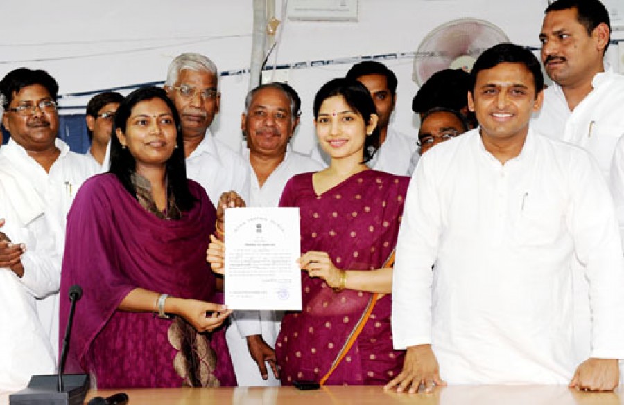 लखनऊ। कन्नौज की जिलाधिकारी सेल्वा कुमारी जे ने मुख्यमंत्री अखिलेश यादव की विशिष्ट उपस्थिति में कन्नौज लोकसभा के उपचुनाव में समाजवादी पार्टी की प्रत्याशी डिंपल यादव को निर्विरोध जीत का निर्वाचन प्रमाण पत्र प्रदान किया। अखिलेश यादव के कन्नौज लोकसभा निर्वाचन क्षेत्र से इस्तीफा देने के फलस्वरूप रिक्त स्थान पर 5 जून 2012 को डिंपल यादव ने नामांकन पत्र भरा था। उनके विरोध में किसी राजनीतिक दल के न आने और दो निर्दलियों के भी नाम वापस लिए जाने के फलस्वरूप 9 जून 2012 को ही उन्हें निर्विरोध घोषित कर दिया गया था।