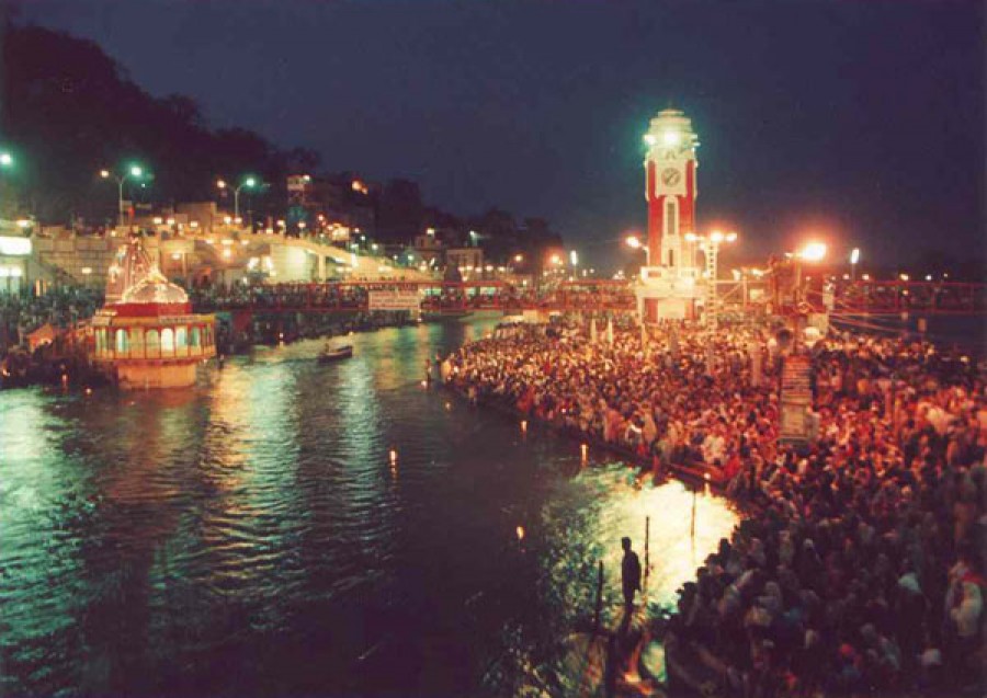 हरिद्वार। कुंभ! प्रयाग, हरिद्वार, नासिक और उज्जैन-भारत में कुंभ के ये चार पवित्र स्थल हैं, जहां हर बारह वर्ष के अंतर से लगने वाला स्नान दान और मोक्ष का यह सर्वश्रेष्ठ ग्रहयोग आता है। ब्रह्माण्ड की अलौकिक शक्ति भगवान शिव के आसन हिमालय की तलहटी में बसी विश्व विख्यात पवित्र नगरी हरिद्वार में मकर संक्रांति के शुभ मुहूर्त के साथ यह योग शुरू हो चुका है। इस योग में करीब दस लाख लोगों ने डुबकी लगाकर अपने मोक्ष और पुण्य फलों की कामना की। हरिद्वार में कुंभ पर्व का जो महत्व है उसका वर्णन पुराणों में बहुत विस्तार से है। जिस समय गुरू कुंभ राशि पर और सूर्य मेष राशि पर हो तब हरिद्वार में कुंभ पर्व आता है। हरिद्वार सहित अन्य स्थानों पर भी कुंभ के ग्रहयोग का विलक्षण वर्णन है।