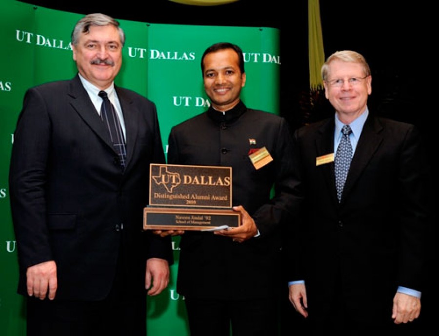 नई दिल्ली। जिंदल स्टील एंड पावर लिमिटेड के कार्यकारी उपाध्यक्ष एवं प्रबंधक निदेशक नवीन जिंदल को एक रंगारंग समारोह में अमेरीका की यूनिवर्सिटी ऑफ टेक्सास डालस ने विशिष्ट ऐल्युमिनाए 2010 पुरस्कार से सम्मानित किया। यह सम्मान उन्हें जन सेवा में उनके योगदान, ज़िम्मेदार कार्पोरेट नागरिक और अपनी कंपनी को वैश्विक स्तर पर पहुंचाने में उसका मार्गदर्शन करने के लिए दिया गया है। नवीन जिंदल भारतीय संसद के सदस्य भी हैं।
