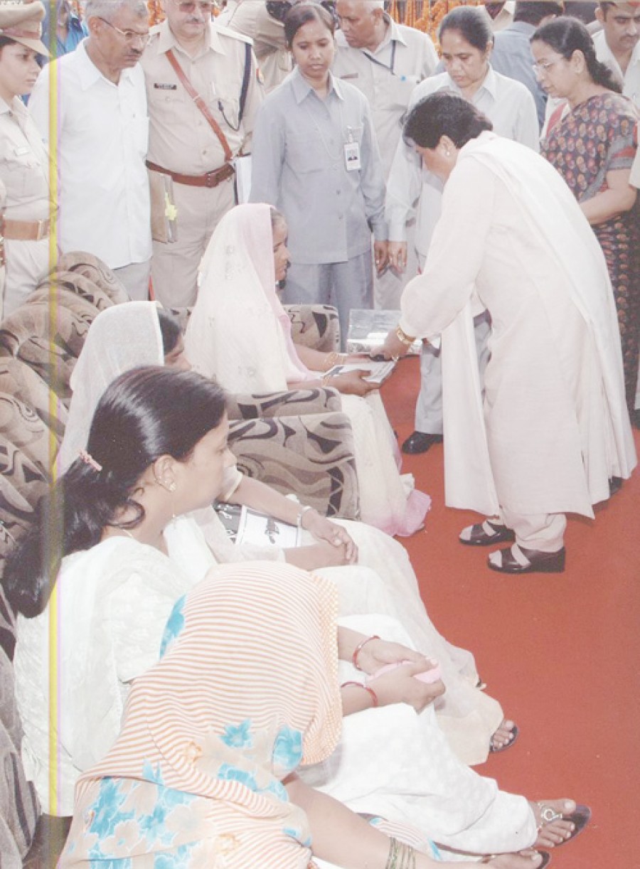 लखनऊ। मुख्यमंत्री मायावती ने पुलिस लाइन में आयोजित पुलिस स्मृति दिवस पर कर्तव्यपालन के दौरान शहीद हुए पुलिस कर्मियों को भावभीनी श्रद्धांजलि दी और घोषणा की कि 1 अप्रैल, 2005 से अंशदायी पेंशन योजना लागू होने के बाद नियुक्त पुलिस कर्मचारी की कर्तव्यपालन में मृत्यु होने पर उसके परिवार को असाधारण पेंशन का लाभ दिया जाएगा। मुख्यमंत्री ने ड्यूटी के दौरान दिवंगत हुए पुलिस कर्मियों के आश्रितों को 305 उपनिरीक्षक के पद पर, 516 आरक्षी के पद पर और 267 चतुर्थ श्रेणी के पद पर नियुक्तियां प्रदान कीं। शहीद हुए 14 पुलिस कर्मियों के आश्रितों को 43 लाख रूपये की अनुग्रह धनराशि भी प्रदान की गई है। पेंशन के 7124 मामलों को भी प्राथमिकता के आधार पर निस्तारित कराया गया है। पुलिस विभाग में कार्यरत चतुर्थ श्रेणी कर्मचारियों को राजकीय अवकाश उपभोग न कर पाने के एवज में प्रत्येक वित्तीय वर्ष में एक माह के वेतन के बराबर अतिरिक्त वेतन दिये जाने की स्वीकृति भी प्रदान की गयी है।मुख्यमंत्री ने कहा कि उनकी सरकार ने पुलिस बल के सदस्यों के लिए बनायी गयी 'कल्याण निधि' के अन्तर्गत 1.50 करोड़ रूपये से अधिक धनराशि का अनुदान उपलब्ध कराया है। चिकित्सा प्रतिपूर्ति के मद में प्रदेश के 825 पुलिस कर्मियों को 6.84 करोड़ रूपये से अधिक की धनराशि दी गयी है। इसके अलावा पुलिस कर्मियों को आर्थिक सहायता प्रदान किये जाने हेतु सुख-सुविधा निधि के अन्तर्गत जनपदों एवं इकाइयों को 2 करोड़ से अधिक का अनुदान आवंटित किया गया है। उन्होंने कहा कि प्रदेश की जनता को अन्यायमुक्त, अपराधमुक्त, भयमुक्त, भ्रष्टाचारमुक्त और विकासयुक्त वातावरण देने का संकल्प लिया है। कानून का राज स्थापित करने की उनकी सरकार की पहली प्राथमिकता है। वर्ष 2007-08 में पुलिस के लिए उपलब्ध बजट 3525 करोड़ रुपये में दो गुना से भी ज्यादा वृद्धि करते हुए वर्तमान वित्तीय वर्ष 2010-11 में 7444 करोड़ रुपये उपलब्ध कराये गये हैं।मुख्यमंत्री ने कहा कि पुलिस बल ने गत वर्ष 57 कुख्यात अपराधियों को मुठभेड़ में मार गिराया, जिसमें 1 लाख रुपये के पुरस्कार घोषित 3 अपराधी और 10 हजार या उससे अधिक धनराशि के पुरस्कार घोषित 54 अपराधी थे। उन्होंने कहा कि प्रदेश पुलिस ने कुख्यात माफियाओं के विरूद्ध प्रभावी कार्यवाही करते हुए उनकी 195 करोड़ रुपये से अधिक की अवैध सम्पत्ति कुर्क की है। इस वर्ष अनुसूचित जाति/जनजाति के विरूद्ध हुए अपराधों में 25 प्रतिशत की कमी आयी है। इसी प्रकार महिलाओं के विरूद्ध हुए अपराधों जैसे बलात्कार में 15 प्रतिशत एवं दहेज के लिए हत्या में भी कमी आयी है।पुलिस महानिदेशक करमवीर सिंह ने भी शहीदों को अपने श्रद्धासुमन अर्पित करते हुए कहा कि उत्तर प्रदेश के शहीद पुलिस जनों में 12 उपनिरीक्षक, 1 एसआई(एम)/आशुलिपिक, 1 गुल्