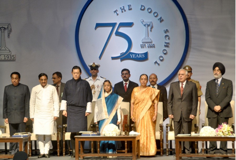 देहरादून। राष्ट्रपति प्रतिभा देवी सिंह पाटिल ने शनिवार को दून स्कूल में 75वें स्थापना दिवस समारोह में भाग लिया। इस अवसर पर अपने संबोधन में उन्होंने कहा कि इस प्रतिष्ठित स्कूल को बालिकाओं के लिए भी खोल दिया जाना चाहिए। राष्ट्रपति ने कहा कि आधुनिक युग में महिलाएं समाज के सभी क्षेत्रों में तेजी से आगे बढ़ रही हैं और इस गति से सामंजस्य स्थापित करते हुए दून स्कूल में बालिकाओं को भी शिक्षा प्राप्त करने का अवसर मिलना चाहिए।राष्ट्रपति ने कहा कि शिक्षा प्रणाली में देश के युवाओं के सर्वांगीण विकास पर ध्यान दिया जाना चाहिए। शैक्षिक पाठ्यक्रम को इस प्रकार तैयार करना होगा, जिससे विद्यार्थियों की दुनिया के बारे में समझ विकसित हो सके। शिक्षा प्रणाली में मूल्यों का समावेश होना चाहिए। शांति, सौहार्द और सहिष्णुता की भावना स्कूलों में विकसित की जानी चाहिए। उन्होंने दून स्कूल की ग्राम विकास परियोजनाओं में सहभागिता की प्रशंसा करते हुए कहा कि समाज सेवा पर इस प्रकार ध्यान देने से व्यक्ति दूसरों की जरूरतों और भावनाओं के प्रति संवेदनशील बनता है।समारोह के विशिष्ट अतिथि भूटान नरेश जिग्मे खेसर नमग्यल वांगचुक ने बेहद सधे, शालीन और कुछ दार्शनिक अंदाज में स्कूली बच्चों को सम्बोधित किया। वांगचुक ने कहा कि जिन्दगी को एक मैराथन दौड़ की भांति लेना चाहिए न कि 100 मीटर की फर्राटा दौड़ की तरह जिसमें कुछ ही समय में अपनी सारी ऊर्जा खर्च हो जाए। वांगचुक ने कहा कि विद्यार्थियों को महाविद्यालय के साथ-साथ आने वाले जीवन के लिए भी तैयार हो जाना चाहिए। सफलता के मायने शक्ति और धन संग्रह नहीं है वरन सफलता का अर्थ सुखी जीवन, अच्छा स्वास्थ्य, अच्छे दोस्त, मजबूत पारिवारिक एवं सामाजिक सम्बन्धों आदि से होना चाहिए। उन्होंने कहा कि किसी भी राष्ट्र का भविष्य उसकी युवा पीढ़ी पर निर्भर करता है।उत्तराखंड की राज्यपाल मार्ग्रेट अल्वा ने कहा कि दून स्कूल ने सामाजिक और सामुदायिक सेवाओं में श्रेष्ठता की महान परम्परा स्थापित की है। राज्यपाल ने कहा कि बालिकाएं लगभग हर क्षेत्र में लड़कों से आगे निकल रही हैं इसलिए दून स्कूल को भी लड़कियों को प्रवेश न देने की अपनी नीति में बदलाव लाना चाहिए। उन्होंने कहा शैक्षिक परिदृश्य और योजनाओं में समता-समानता और एकता के मूल्यों का समावेश होना चाहिए।मुख्यमंत्री डॉ रमेश पोखरियाल निशंक ने दून स्कूल के विद्यार्थियों, उनके अभिभावकों और स्कूल के संचालकों को विद्यालय के 75 सफल वर्ष पूरे होने पर बधाई देते हुए कहा कि इस विद्यालय ने समाज के सभी क्षेत्रों में एक से बढ़कर एक नायक दिये हैं। उत्तराखण्ड के लिये यह हर्ष का विषय है कि देश को विभिन्न क्षेत्रों में नेतृत्व प्रदान करने वाले विभिन्न लोग