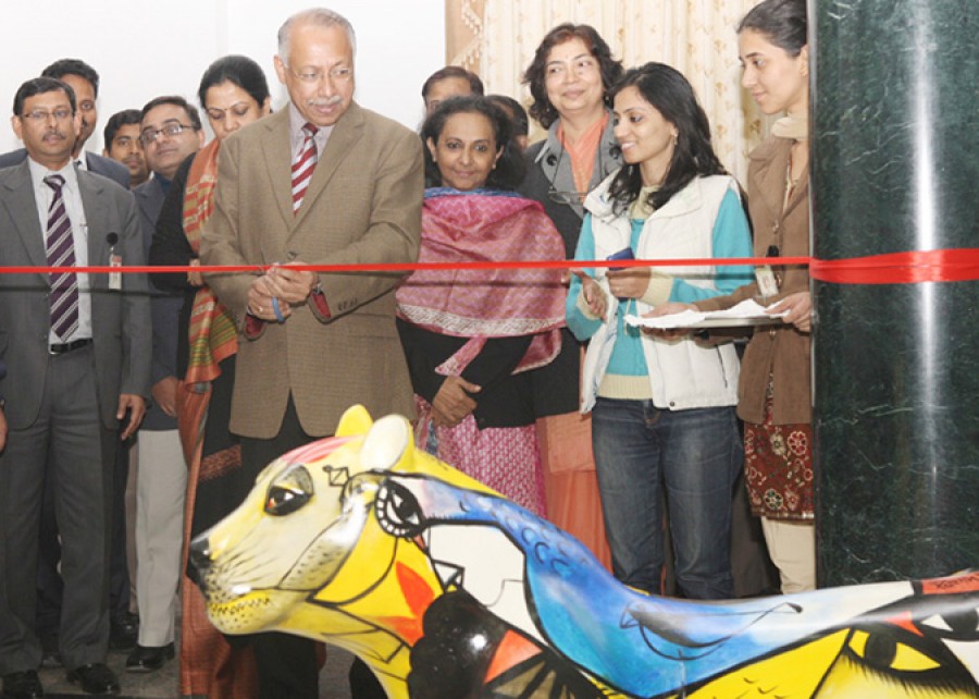 नई दिल्ली। राष्ट्रपति भवन सभागार में मंगलवार को टाईगर परियोजना पर देश के 58 प्रसिद्ध कलाकारों की कला प्रदर्शनी का उद्घाटन राष्ट्रपति के सचिव डॉ क्रिस्टी फर्नांडीस ने किया। इस मौके पर जानेमाने कलाकार उपस्थित थे जिन्होंने टाईगर को विभिन्न मुद्राओं में चित्रित किया।