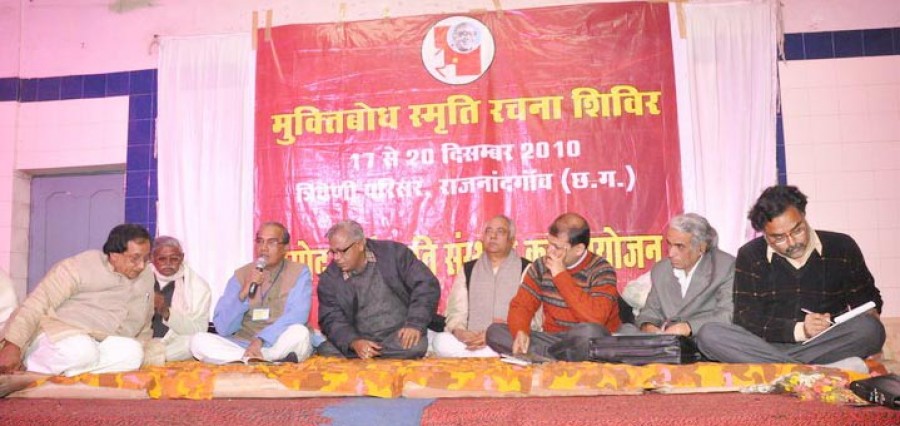 राजनांदगांव। 'मुक्तिबोध कवियों में महाकवि थे, पूरा विश्व उनके काव्य-योगदान से अभिभूत है, देश को आज मुक्तिबोध की ही जरूरत है।' उनकी स्मृति में पहली बार उन्हीं की कर्मस्थली त्रिवेणी परिसर राजनांदगांव में आयोजित चार दिवसीय युवा रचना शिविर में प्रतिष्ठित साहित्यकार नंद भारद्वाज ने यह बात कही। उन्होंने आठ राज्यों से आए प्रतिभागी युवा रचनाकारों का आह्वान किया कि वे उनकी ज़मीन पर आकर उनकी रचनाओं से प्रेरणा ले सकते हैं। नंद भारद्वाज ने रचनाकारों से कहा कि उन्हें अभिव्यक्ति की स्वतंत्रता के लिए ख़तरा उठाने को कटिबद्ध होना चाहिए।