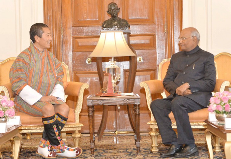 नई दिल्ली। भूटान के प्रधानमंत्री डॉ लोटे शेरिंग ने राष्ट्रपति भवन नई दिल्ली में राष्ट्रपति रामनाथ कोविंद से भेंट की। भारत में प्रधानमंत्री डॉ लोटे शेरिंग का स्वागत करते हुए राष्ट्रपति ने कहा कि भारत-भूटान के बीच औपचारिक राजनयिक संबंधों की स्थापना के स्वर्ण जयंती वर्ष के उपलक्ष्य में भारत की यात्रा पर आए भूटानी प्रतिनिधिमंडल का स्वागत करते हुए उन्हें अत्यंत प्रसन्नता का अनुभव हो रहा है। राष्ट्रपति ने चुनावों में डीएनटी की विजय पर भूटान के प्रधानमंत्री को बधाई दी।