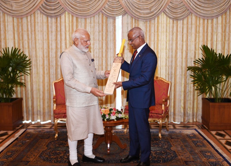 माले। प्रधानमंत्री नरेंद्र मोदी ने मालदीव के राष्ट्रपति इब्राहिम मोहम्मद सोलिह को भारतीय विश्व कप टीम के हस्ताक्षर वाला क्रिकेट बैट प्रदान किया।