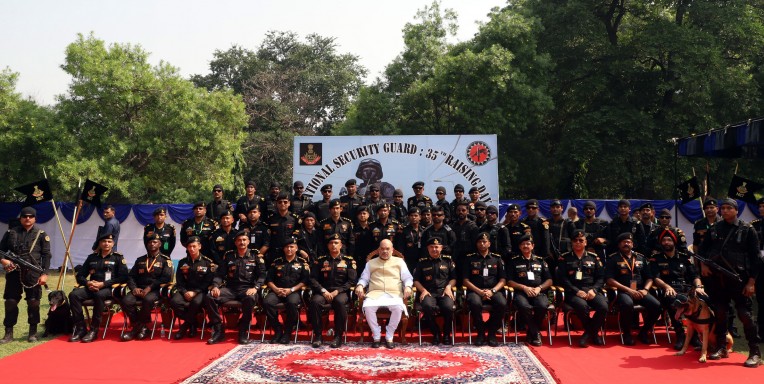 मानेसर। राष्ट्रीय सुरक्षा गार्ड के 15 अक्टूबर 2019 को मानेसर हरियाणा में स्थापना दिवस समारोह में एनएसजी कर्मियों के साथ एक समूह तस्वीर में केंद्रीय गृहमंत्री अमित शाह।