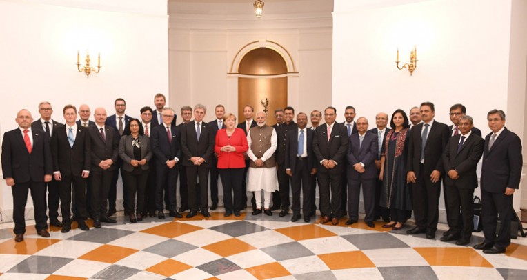 नई दिल्ली। हैदराबाद हाउस नई दिल्ली में बिजनेस लीडर्स के साथ एक ग्रुप फोटोग्राफ में प्रधानमंत्री नरेंद्र मोदी और जर्मनी की चांसलर डॉ एंजेला मार्केल।