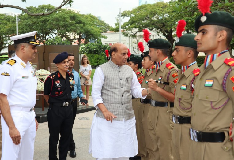 सिंगापुर। रक्षामंत्री राजनाथ सिंह ने 19 नवंबर 2019 को सिंगापुर में इंडियन नेशनल आर्मी मेमोरियल में विजिटिंग नेशनल कैडेट कोर कैडेट्स के साथ बातचीत की।