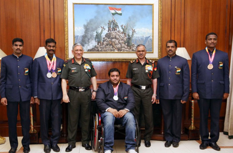 नई दिल्ली। सेना पैरालंपिक एथलीट एशियाई खेल-2018 के खिलाड़ियों के साथ एक समूह तस्वीर में सेनाप्रमुख जनरल बिपिन रावत।